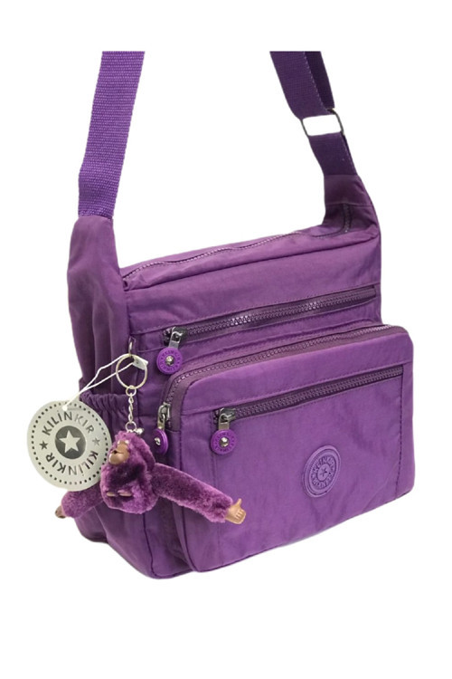 Serenity Klinkır Mor Renkli Bol Cepli Anahtarlık Hediyeli Su Geçirmez Kumaş Çapraz Askılı Kadın Postacı Çanta