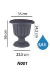 Ağız Genişliği:35 cm Saksı Yüksekliği:24,2 cm Yerden Yükseklik:34,3 cm Hacim:9,8 lt