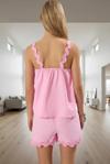 Rahatlığı ve şıklığı bir arada arayanlar için ideal olan bu pembe pijama takımı, yaz gecelerine özel tasarlandı. Pamuklu yapısıyla yumuşak ve nefes alabilir bir deneyim sunarken, şerit detaylarıyla da tarzınıza modern bir dokunuş katıyor. Kolsuz üst ve boru paça şort tasarımıyla sıcak havalarda serin kalmanızı sağlarken, regular kalıbıyla da tüm vücut tiplerine uyum sağlıyor. Evde rahatlamak ve keyifli vakit geçirmek için mükemmel bir tercih olan bu takım, aynı zamanda kaliteli ve dayanıklı yapısı ile uzun süreli kullanım imkanı sunuyor.
