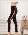 Pamuklu ve likralı kumaştan üretilmiş, yandan şeritli sporcu kadın tayt modelidir.