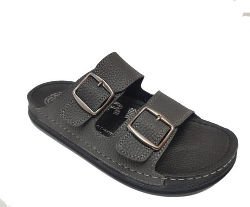 9037-25 Deri Anatomik Çift Bant Erkek Terlik