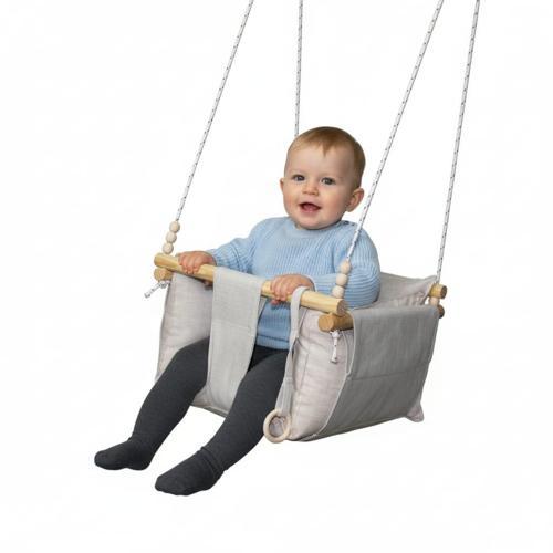 Bebeğinizin güvenle ve keyifle sallanabilmesi için tasarlanan bu el yapımı ahşap bebek salıncağı,