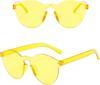 Dayanıklı sert mika malzemeden üretilen bu gözlük, 5x14 cm ölçüsüyle yüz hatlarına uyumlu olup retro ve modern tarzı bir arada sunar. Çerçevesiz tasarımıyla dikkat çekici bir aksesuar olan sarı şeffaf lens, enerji dolu ve iddialı bir stil yaratmak için idealdir.