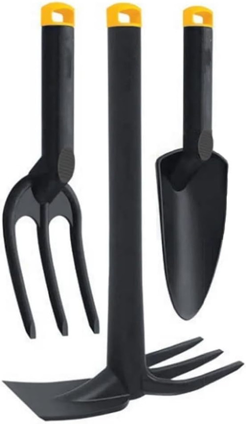 Sert Plastik Üçlü Bahçe Seti, Hobi Kürek - Çapa - Tırmık Bahçıvan Seti, Yüksek Basınca Dayanıklı Gövde, Paslanma Derdi Yok.