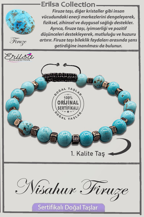 (Doğal Terahertz - Nişabur Firuze Taşı Bileklik - İran - %100 Doğal ve Sertifikalı)