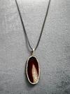 Kahve rengi tonlarındaki akik taşı, kolyenin genel estetiğini zenginleştirir ve göz alıcı bir parlaklık sunar.