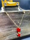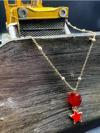 El yapımı tasarımıyla öne çıkan bu kolye, her bir detayı özenle işlenmiş akik doğal taş kullanılarak üretilmiştir; Doğal taş materyali sayesinde, her kolye benzersiz ve eşsiz bir görünüm sunar; Kırmızı yıldız obje detayları ile zenginleştirilmiş tasarım, şıklığınıza modern bir dokunuş katarken, aynı zamanda zarifliğinizi ön plana çıkarır;