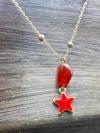 Gümüştel El Sanatları Sertifikalı Akik Doğal Taş Tasarım Kolye El Yapımı Kırmızı Yıldız Obje Detaylı