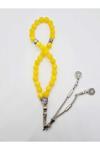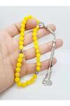 - Gümüş kaplama detaylarıyla zenginleştirilmiş, uzun ömürlü ve şık bir görünüm sunar.; - Doğal akik taşı, her bir tesbihin benzersiz ve otantik bir dokunuşla parlamasını sağlar.; - 1010125 renk kodu ile sarı tonlarında zarif bir renk paleti sunar, göz alıcı bir estetik oluşturur.; - Düz deseni sayesinde sade ve modern bir tasarıma sahip olup, her türlü kıyafetle kolayca uyum sağlar.