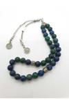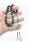 - Gümüş kaplama detaylarıyla zenginleştirilmiş, uzun ömürlü ve şık bir kullanım sunar.; - Doğal taşın eşsiz dokusu ve rengiyle dikkat çeken, lacivert yeşil tonlarındaki azurit taşı, her parça benzersiz bir karakter kazandırır.; - Düz deseni sayesinde sade ve zarif bir görünüm sergiler, farklı kıyafetlerle kolayca uyum sağlar.; - Lacivert web rengi ile modern ve sofistike bir stil vurgusu yapar, günlük kullanım için idealdir.; - 8 mm boyutundaki sertifikalı azurit doğal taş tesbih, kaliteyi ve estetiği bir arada sunar.