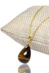 Sertifikalı Damla Drop Model Kaplan Gözü Taşı Kolye - Altın Renkli