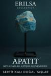 Mavi tonlarının derin ve canlı yansımalarıyla dikkat çeken Apatit Taşı, bu özel objede ham ve doğal formuyla, zarif metal stand üzerinde sunulmaktadır. Spiritüel uyanışı teşvik eden ve zihinsel açıklık kazandıran Apatit, özellikle ilham arayan, yaratıcı çalışmalarda bulunan ya da konsantrasyon eksikliği yaşayanlar için güçlü bir doğal destekçidir.