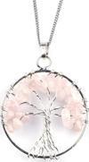 Gümüştel El Sanatları Sertifikalı Doğal Taş Pembe Kuvars Hayat Ağacı Tasarım Kolye Sürpriz Hediyeli 5x5 Cm