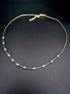 Canlı turkuaz rengiyle dikkat çeken bu kolye, web renk paletine uygun olarak tasarlanmıştır ve göz alıcı bir görünüm sağlar.