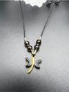 Sertifikalı Dumanlı Kuvars ve Sedef Doğal Taş kullanılarak üretilmiş, zarif bir tasarıma sahip kolye.