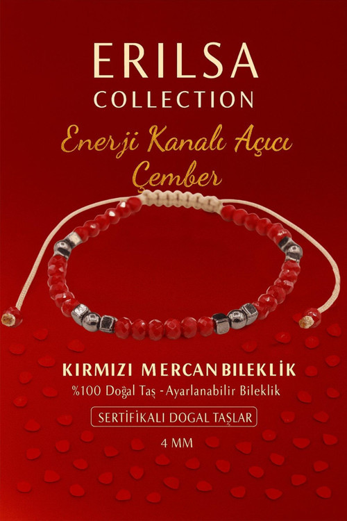 Kırmızı mercan taşı, canlılık, hayat enerjisi ve güç merkezlerini aktive eden nadir taşlardan biridir. Bu bileklik bedensel enerjiyi yükseltmeyi, motivasyonu artırmayı ve duygusal gücü dengelemeyi amaçlayan kullanıcılar için tasarlanmıştır. 4 mm doğal mercan taşları faset kesimli yapısıyla dikkat çeker ve bilekte zarif bir duruş oluşturur. Ayarlanabilir makrome örgüsü sayesinde kullanım kolaylığı sağlar. Enerji alanını canlandırmak isteyenler için ideal bir seçimdir. ERILSA Collection tarafından üretilen tüm ürünlerde olduğu gibi bu bileklik de sertifikalı doğal taşlardan hazırlanmıştır ve uzun ömürlü kullanım sunar.