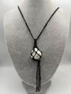El yapımı örgü modeli ile öne çıkan bu kolye, her bir detayı özenle işlenmiş ve benzersiz bir tasarıma sahiptir.