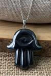 Özel tasarım Fatıma eli kolye, hematit doğal taşı kullanılarak üretilmiştir..