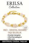 El işçiliğiyle hazırlanan bu sertifikalı bileklik, doğal inci ve kristal kuvars taşı chip boncuklarından oluşan ince model tasarımıyla ön plana çıkar. İnci, zarif bir şıklık katarken; kristal kuvars, enerjinizi dengeler, zihinsel berraklık sağlar ve şifa enerjisi yaratır. Ayarlanabilir altın kaplama uzatma zinciri, tüm bilek ölçülerine kusursuz uyum sunar; günlük kullanımdan özel davetlere kadar her anınıza pozitif bir dokunuş katar.