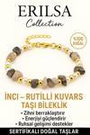 El işçiliğiyle hazırlanan bu sertifikalı ince model bileklik, doğal inci ve rutil kuvars taşı chip (kırık taş) diziliminden oluşur. İnce altın kaplama uzatma zinciri sayesinde tüm bilek ölçülerine konforlu uyum sunar; günlük kullanımdan özel davetlere kadar her anınıza sofistike bir dokunuş katar.