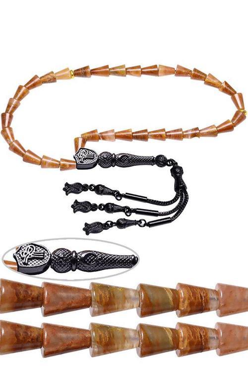 Erilsa Sertifikalı Kararmaz Püskül Göz Yaşı Kesim Kahverengi Doğal Akik Taşı Tesbih