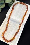 Sertifikalı kehribardan oluşan özel tasarım kolyemiz taşların arasında düğüm atılmıştır.