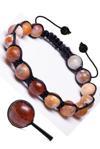 Kırmızı akik taşı kullanılarak tasarlanmış esnek sağlam misinalı doğal taş bileklik ortalama 18 CM uzunluğunda olup 20-22 CM'ye kadar açılarak her bileğe göre ayarlanabilir. Taşın yaklaşık ölçüsü 8x8