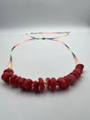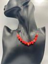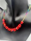 Canlı kırmızı rengi ile dikkat çeken bu kolye, hem günlük kullanım hem de özel günlerde şıklığıyla ön plana çıkarır.