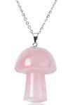 Sertifikalı Mantar Model Pembe Kuvars Taşı Kolye (Gümüş Aparatlı)