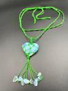 - El yapımı özenle seçilmiş opal taşlarla süslenmiş, her biri benzersiz ve özgün bir tasarıma sahip kolye.; - Yetişkin ve genç kızlar için uygun, şık ve zarif bir aksesuar seçeneği.; - Doğal taş kullanımı sayesinde hem doğallığı hem de estetiği bir arada sunar.; - Tek ebat tasarımı ile farklı bedenlere uyum sağlayarak her kullanıcıya hitap eder.; - Yeşil renk tonlarındaki opal taşlar, kolyenin doğal güzelliğini ön plana çıkarır.