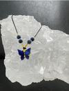 Gümüştel El Sanatları Sertifikalı Orijinal Lapis Lazuli & Sedef Doğal Taş Kolye Kelebek Detaylı Asansörlü Kilit Sistemi