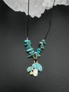 - Yetişkin ve kadın/kız kullanıcılar için ideal bir aksesuar seçeneği sunar.; - Doğal taş kullanımı sayesinde her kolye benzersiz ve otantik bir görünüm kazanır.; - Tek ebat tasarımı ile farklı bedenlere uyum sağlar ve kolayca takılabilir.; - Turkuaz rengi, zarifliği ve şıklığıyla dikkat çeker.; - Mantar obje detayları, kolyeye modern ve estetik bir dokunuş katar.