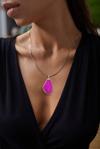 Sertifikalı Yüksek Kalite Doğal Pembe Akik Taşı Plaka Kolye