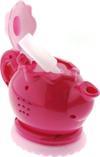 Fokurdama ve çay doldurma sesleri çıkartır. Kapağını açıp haznesine su doldurulduğunda ağzından buhar çıkartır.