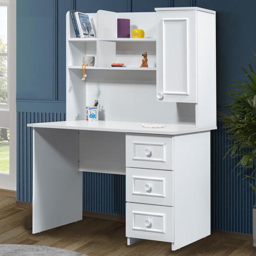 * Çalışma masası 3 çekmece, raf ve dolaptan oluşmaktadır. Ürün Kurulu Ölçüleri: Genişlik: 110 cm Yükseklik:154 cm Derinlik: 60 cm