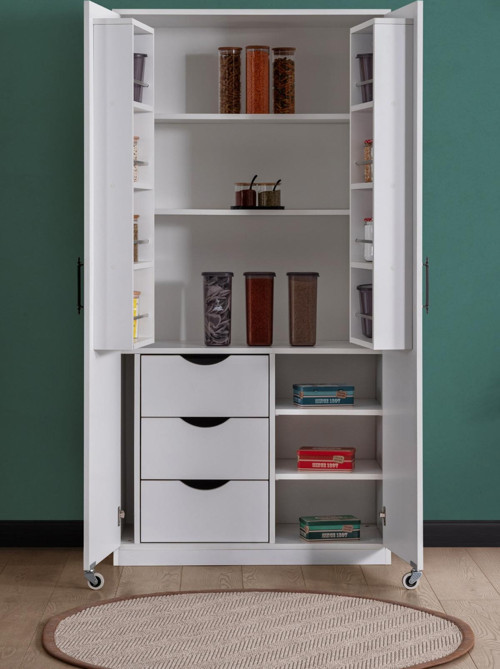 Blesk 2 Kapaklı Büyük Erzak Kiler Mutfak Dolabı Ceviz * Erzak dolabı 1.sınıf melamin kaplı yonga levha malzemeden üretilmiştir.; * Çok fonksiyonlu gözlü iç bölmelere sahiptir * Dolap raf ve 3 çekmeceden oluşmaktadır.; Ürün Kurulu Ölçüleri: Genişlik : 90 cm Yükseklik :180 cm Derinlik : 45 cm Teslimat & Ürünler tüm kargo firmalarının 2016 yılının başında yapmış oldukları anlaşma gereği bina giriş kapısında teslim edilmektedir.; Bunun için tüm müşterilerimizden kargo firmaları adına özür dileriz.; Ürünler teslim edildiğinde paketlerin dış yüzeyinde bir hasar söz konusu ise lütfen kargocu gitmeden hasar tespit tutanağı tutturunuz.; Hasar tespit tutanağı olmayan ürünlerle ilgili değişim işlemleri yapılamamaktadır.; Bulunduğunuz bölge mobil alan ise alışverişten önce lütfen bizimle iletişime geçiniz.; • Garanti Bilgisi Üretim ve işçilik hatalarını kapsayan 2 yıllık garanti ile birlikte ürünün konforunu içiniz rahat bir şekilde yaşayabilirsiniz.; Ürün Avrupa TÜV CERT ISO 9001 kalite standardına uygun üretilmiştir.; • Kurulum Hizmeti Ürünler kargo paketlerine de-monte olarak teslim edilir ve kurulum müşteriye aittir.; Müşterilerimizin mağdur olmaması için ürünlerimizi kolay kuruluma özel dizayn etmiş bulunmaktayız.; Bu yüzden paketlerin içerisinde kolay kurulum için kurulum şeması, vidaları ve aksesuarların montaj şeması aynı zamanda uyumlu malzeme torbası içermektedir ;