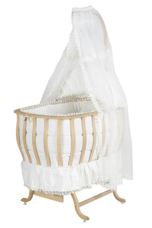 Setay Mobilya Doğal Ağaç Beşik, Otantik Lüx Sallanan Beşik + Uyku Seti + Cibinlik - Natural