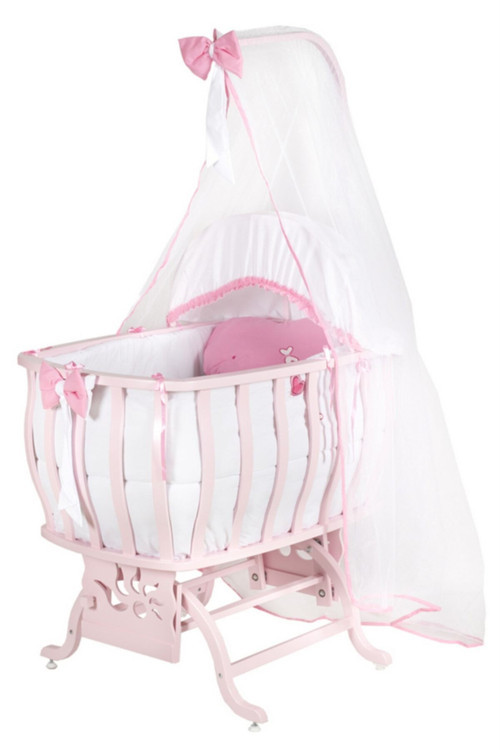Setay Mobilya Doğal Ağaç Beşik, Otantik Lüx Sallanan Beşik + Uyku Seti + Cibinlik - Pembe
