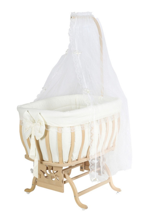 Setay Mobilya Mdf Beşik, Fiyonklu Sallanan Beşik Uyku Seti Cibinlik - Natural