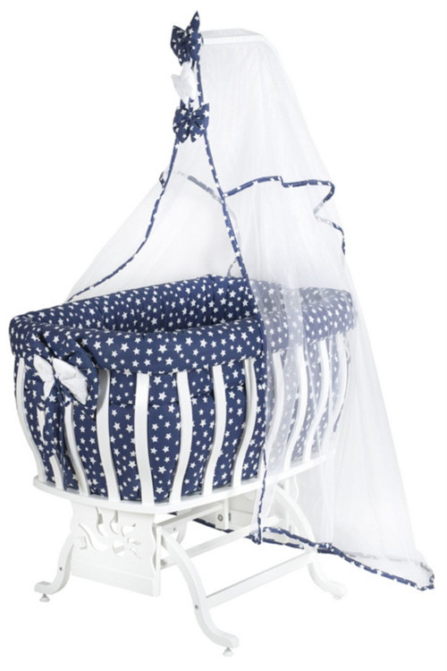 Setay Mobilya Mdf Beşik, Fiyonklu, Yıldızlı Sallanan Beşik Uyku Seti Cibinlik - Lacivert