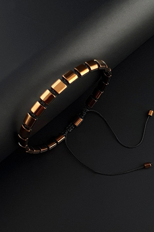 Seven Art Jewelry Hematit Bakır Renk Doğal Taş Kanallı Makrome Bileklik – El Yapımı Şık ve Ayarlanabilir Tasarım