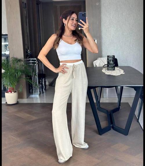Sevgi Acar Bol Salaş Tarz Bej Pantolon