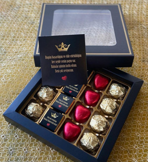 Siyah Kutuda Altın Ve Kalpli Çikolatalar, Sevgiliye, Anneye, Babaya, Teşekkür Hediyesi. Doğum Günü