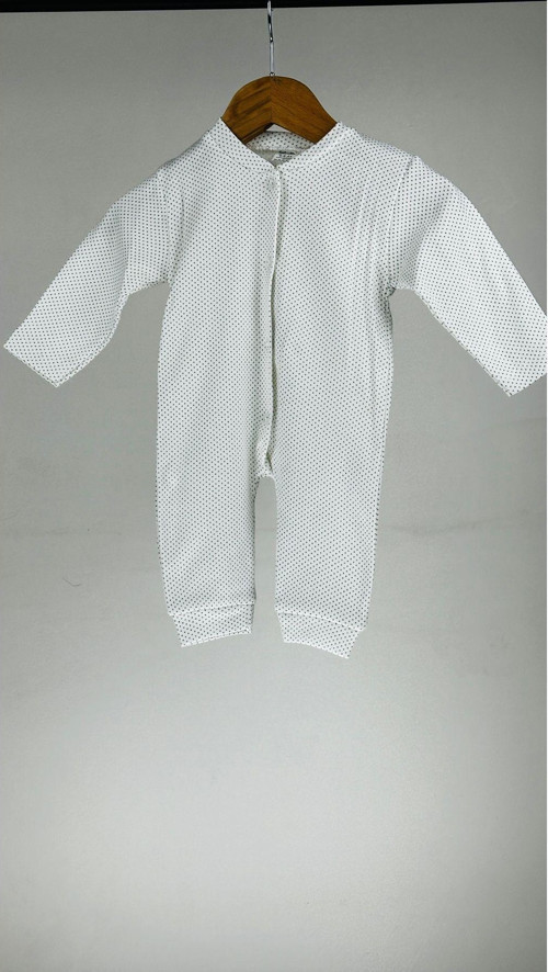 Puantiyeli %100 Pamuklu Uzun Kollu Bebek Tulum Beyaz 6 Ay