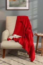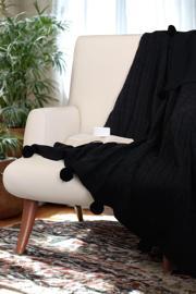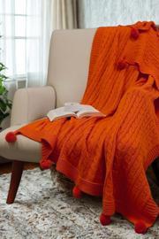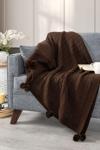 Sevim Ponponlu Triko Örme Tv Battaniyesi – Koltuk & Omuz Şalı & Diz Battaniyesi – 130X170Cm - Kahverengi