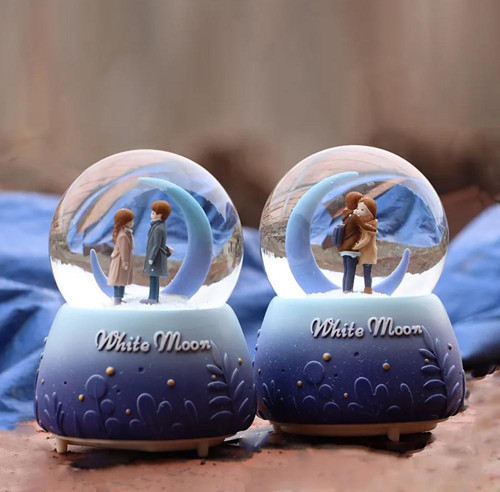 1 Adet Sevimli Çift Temalı Işıklı Müzikli Kar Küresi