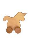 - Sürülebilir, Dönen Tekerlekli Ahşap Unicorn Figürlü Araba.