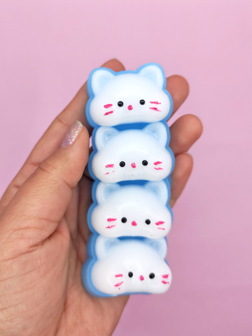 Sevimli Kedi Suratları Squishy Taba Sukuşi Yumuşacık (10x4cm) Kedi Sukuşi - Mavi