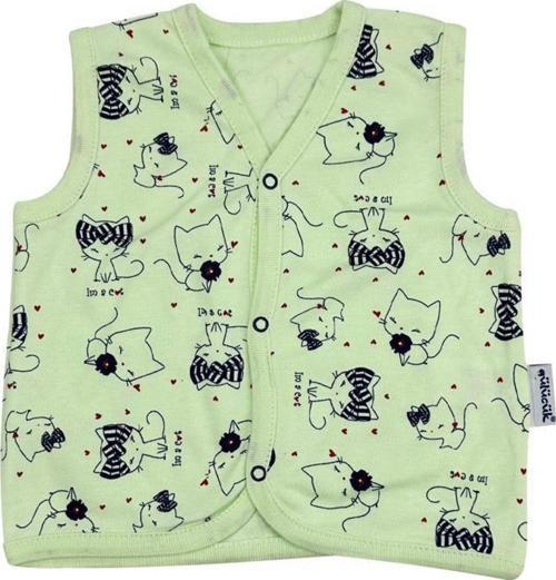 Gülücük Sevimli Kedicik Pamuklu Kız Bebek Yelek Fıstık Yeşil FISTIK YEŞİLİ-9 AY