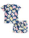 2 parça kız çocuk t-shirt ve şort takım. Pamuklu penye kumaştan, üzeri kedi baskılı, kısa kol t-shirt. Takımın tamamlayıcısı pamuklu penye kumaştan şort. Beli hem lastik hem de kordonlu şort. Tüm Denokids ürünleri çocuk güvenlik kurallarına uygun üretilmekte ve tek tek iğne dedektörlerinden geçmektedir.